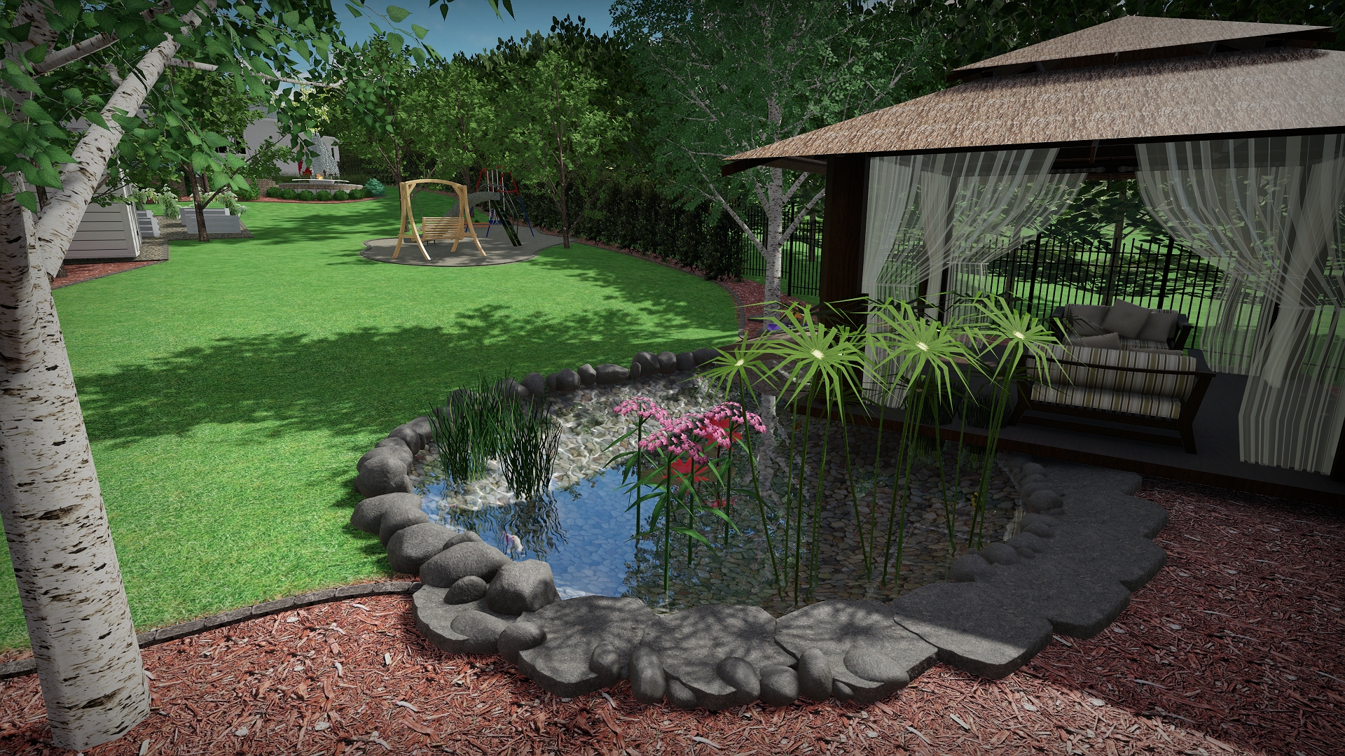Fontosnak tartjuk az előremutató szemléletet, ezért kérésre 3D-s látványtervvel támogatott kerttervezést biztosítunk.