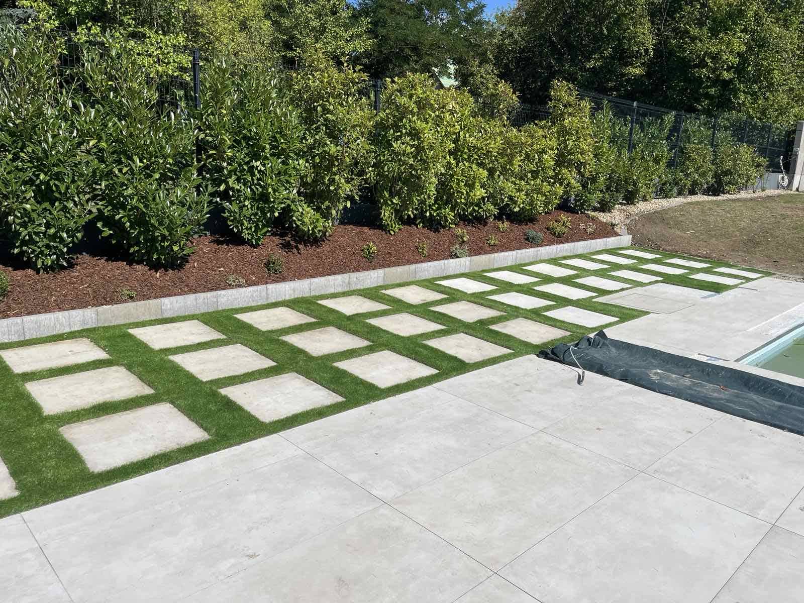 A kivitelezés során elvégezzük a tereprendezést, gépi földmunkát, vízelvezetési rendszerek kialakítását, térburkolást, támfal- és kerítésépítést, öntözőrendszer telepítést, valamint a növények és gyep szakszerű telepítését. Minden munkafolyamatot összehangoltan, műszaki kontroll mellett végzünk, hogy a végeredmény tartós, esztétikus és hosszú távon fenntartható legyen.